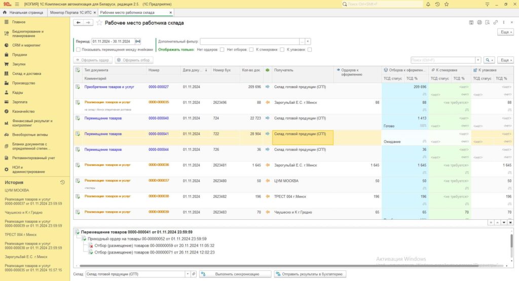 У Вас будет возможность оперативного контроля наличия и знание места нахождения сырья, материалов или продукции.